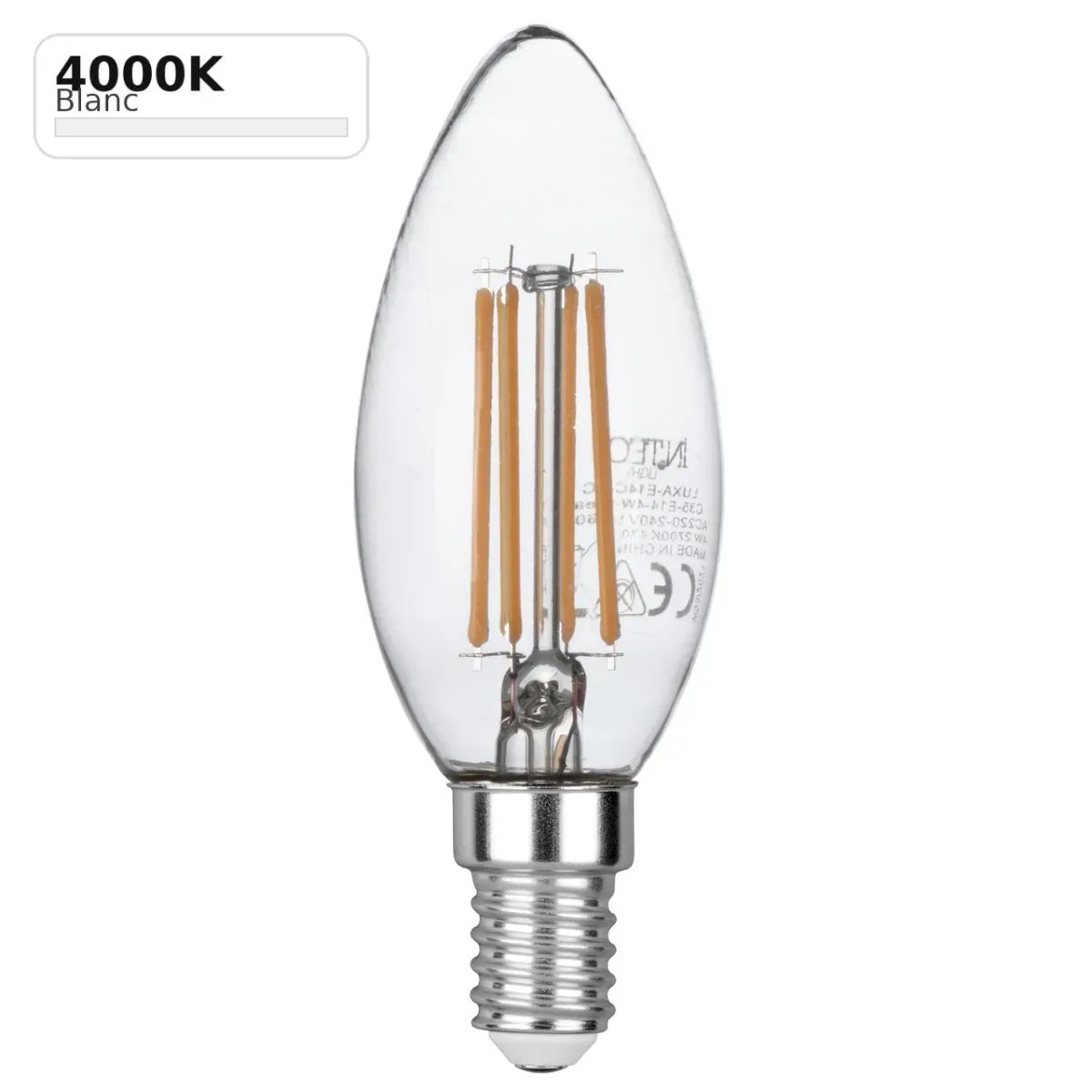 Ampoule LED Flamme Filament Dimmable E14 4W 400lm 4000°K INTEC LUXA
