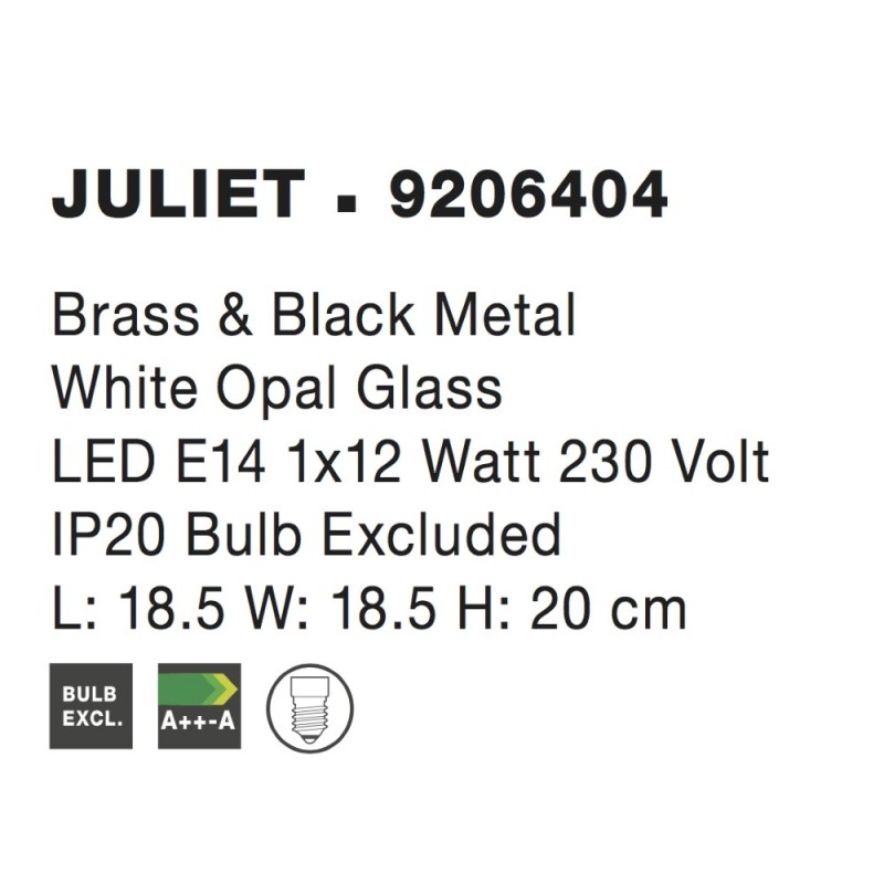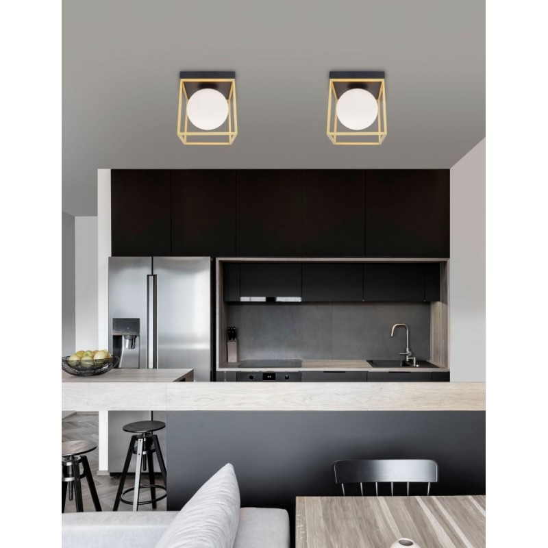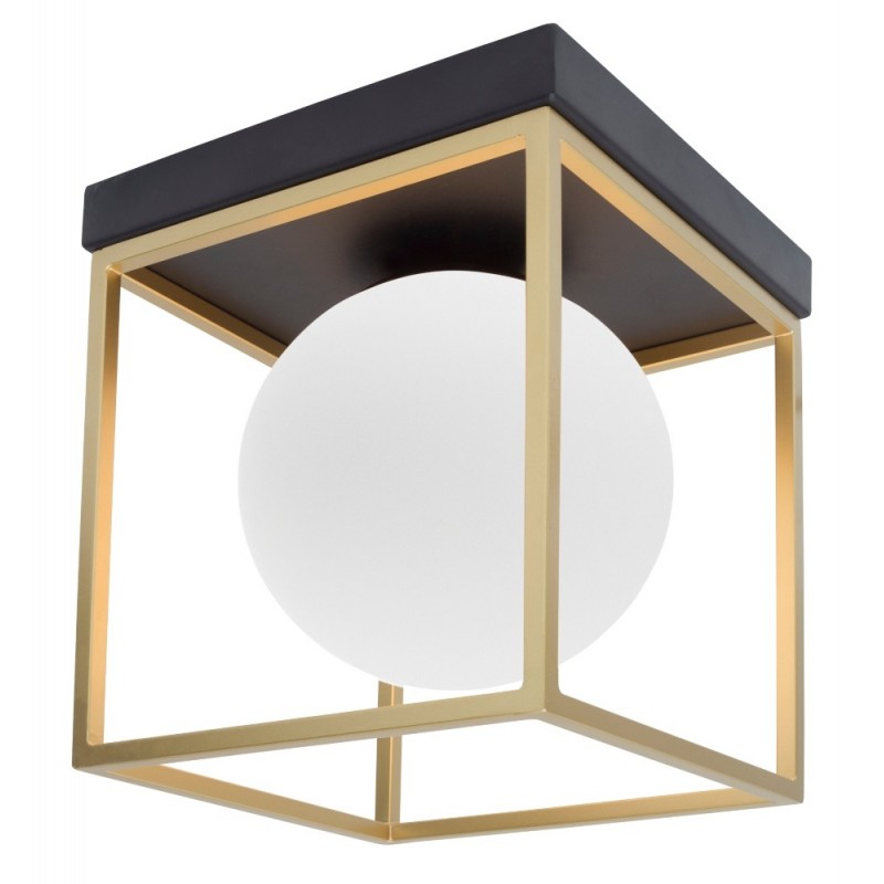 Brass & Black Metal White Opal Glass LED E14 1x5 Watt 230 Volt IP20 Bulb Excluded L: 18.5 W: 18.5 H: 20 cm