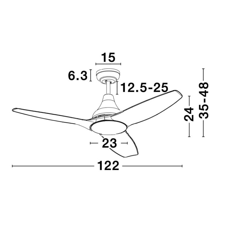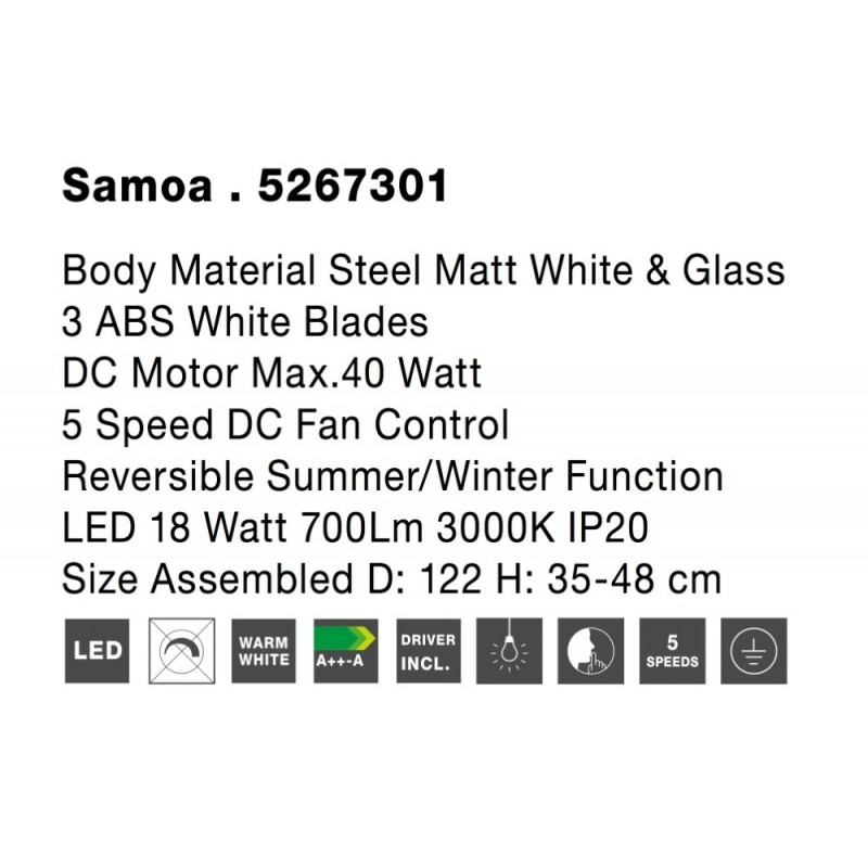 Fan Steel & Glass ABS Blades White or Black,D: 122 H: 35-48 cm 5 Speed Remote, 51cm Blade DC 42W,AC220-240V 5000CFM 220RPM,< 30