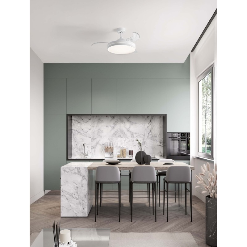 Matt White Metal & Abs LED 36 Watt 4100Lm 220-240Volt IP20 3000-4000-6500K 40Watt Rated Power & 6 Speeds With Remote Control