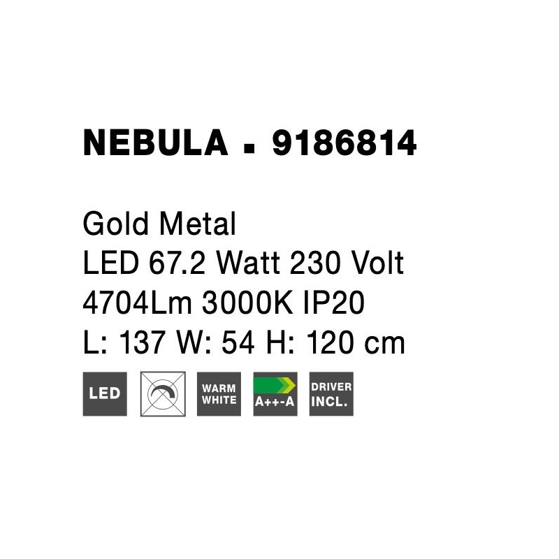 Gold Copper LED 58 Watt 230 Volt 3906Lm 3000K IP20 Led Chip: 168 Pcs L: 163 W: 54 H: 120 cm Adjustable Height