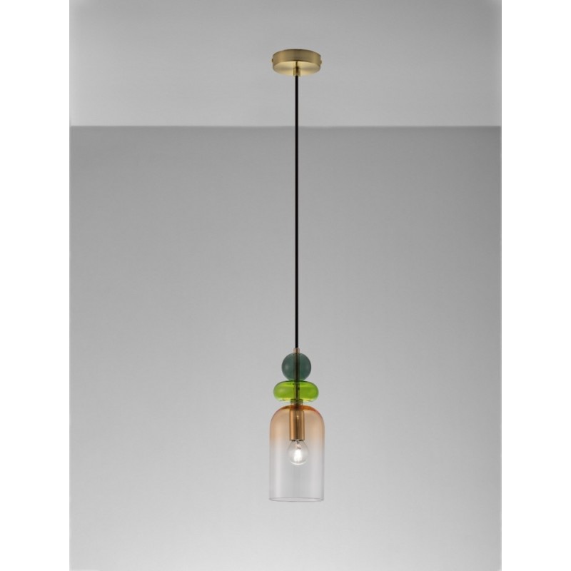 Sandy Gold Metal Glossy Light Green, Dark Green & Orange Glass LED E14 1x5 Watt 230 Volt IP20 Bulb Excluded D: 10.8 H1: 30 H2:
