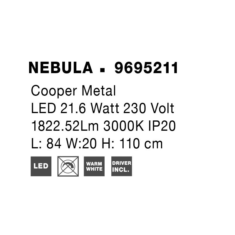 Gold Copper LED 25 Watt 230 Volt 2049Lm 3000K IP20 Led Chip: 60 Pcs L: 84 W: 22 H: 110 cm Adjustable Height