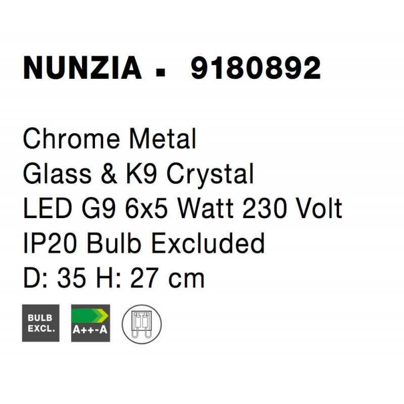 Chrome Metal Glass & K9 Crystal LED G9 6x5 Watt 230 Volt IP20 Bulb Excluded D: 35 H: 27 cm