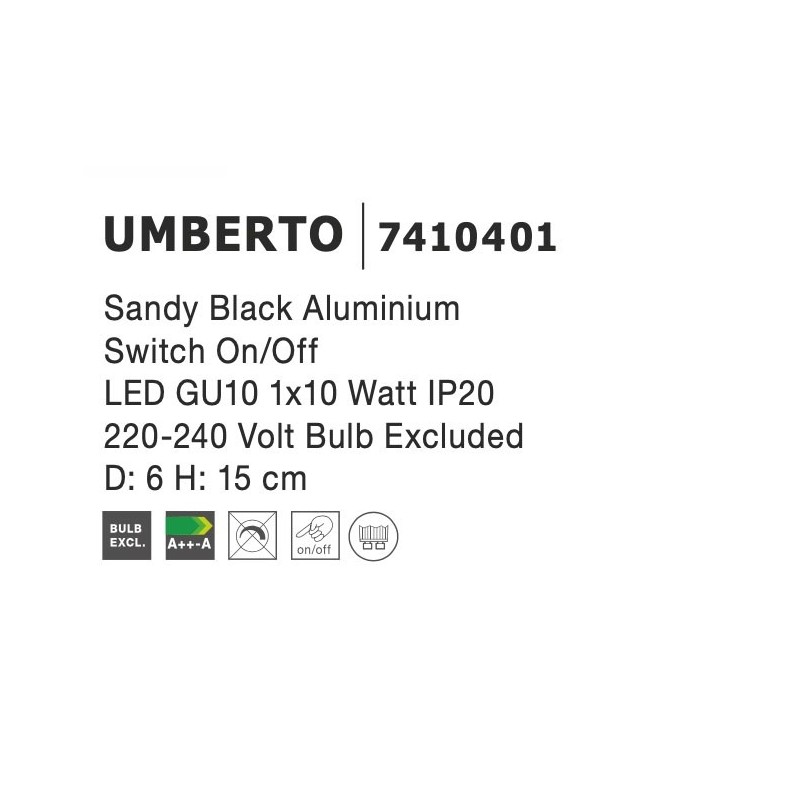 Sandy Black Aluminium Switch On/Off LED GU10 1x10 Watt IP20 220-240 Volt Bulb Excluded D: 6 H: 15 cm