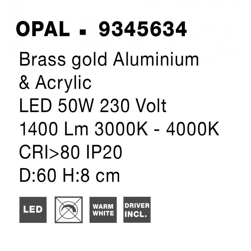 CCT Dimmable Brass Gold Aluminium & Acrylic LED 48 Watt 230 Volt 3730Lm 2700K - 4000K IP20 Remote Control Included D1: 60 D2: