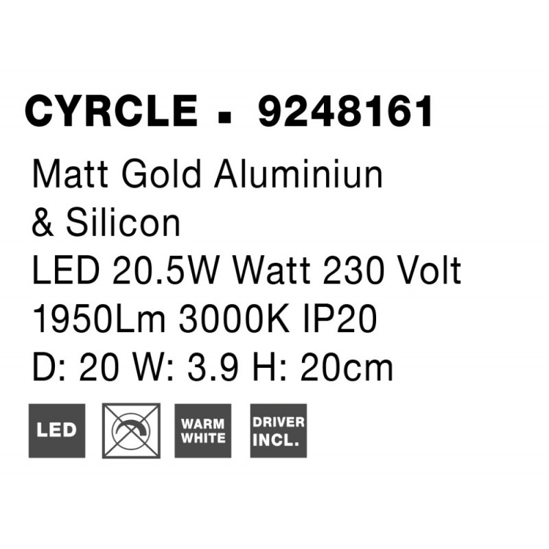 Matt Gold Aluminiun & Acrylic LED 12W Watt 230 Volt 850Lm 3000K IP20 D: 20 W: 3.9 H: 20cm