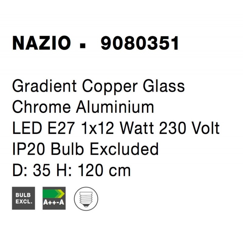 Gradient Copper Glass Chrome Aluminium LED E27 1x12 Watt 230 Volt IP20 Bulb Excluded D: 35 H1: 37 H2: 120 cm Adjustable height