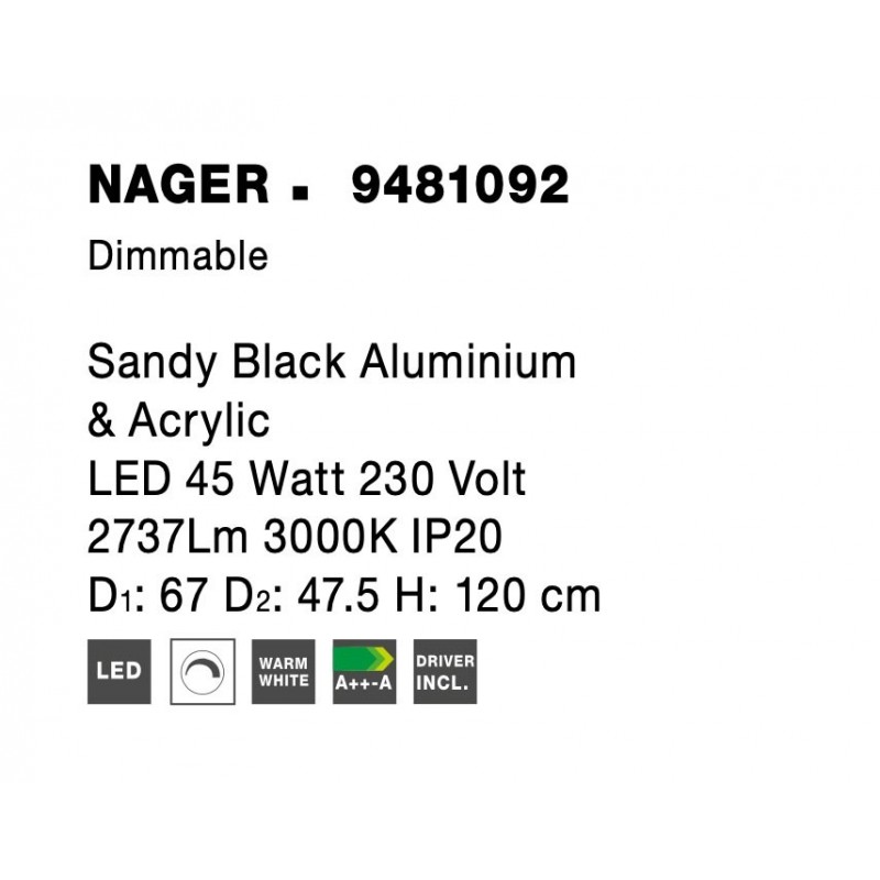 Traic Dimmable Sandy Black Aluminium & Acrylic LED 45 Watt 230 Volt 2737Lm 3000K IP20 D1: 67 D2: 47.5 H: 120 cm Adjustable heig