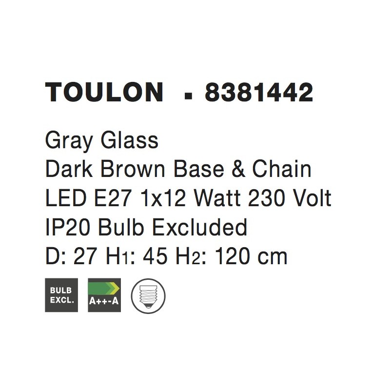 Gray Glass Dark Brown Base & Chain LED E27 1x12 Watt 230 Volt IP20 Bulb Excluded D: 27 H1: 45 H2: 120 cm