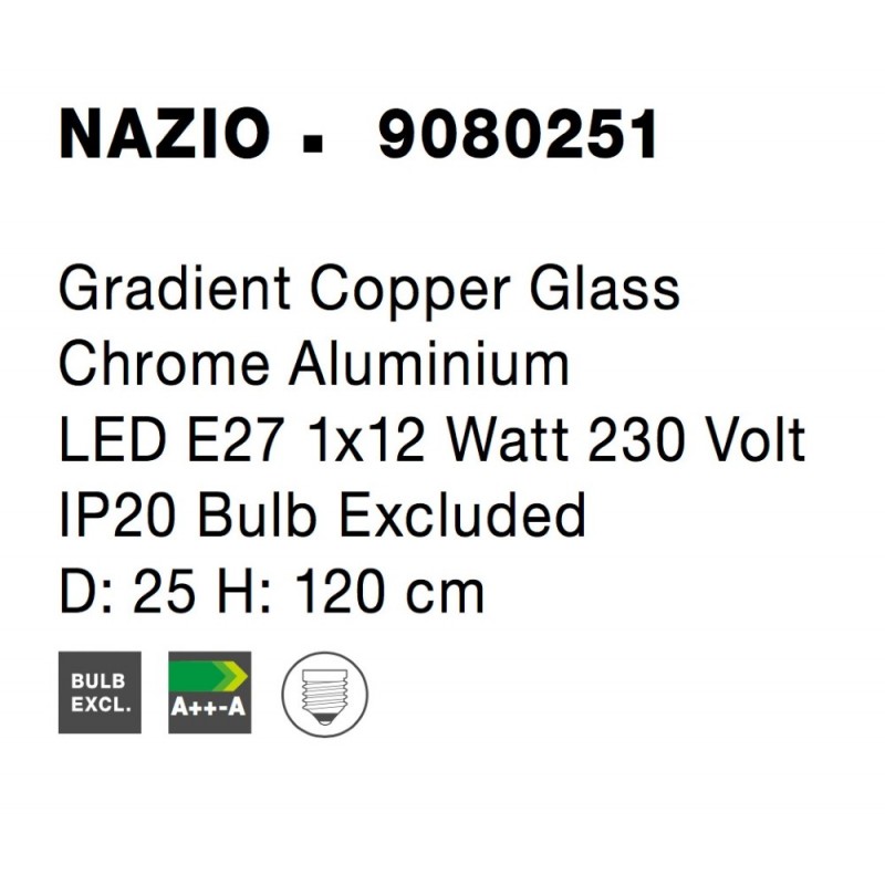 Gradient Copper Glass Chrome Aluminium LED E27 1x12 Watt 230 Volt IP20 Bulb Excluded D: 25 H1: 26.5 H2: 120 cm Adjustable heigh
