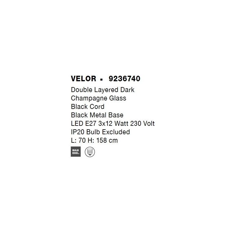 Double Layered Dark Champagne Glass Black Cord Black Metal Base LED E27 3x12 Watt 230 Volt IP20 Bulb Excluded L: 70 W:18 H: 15
