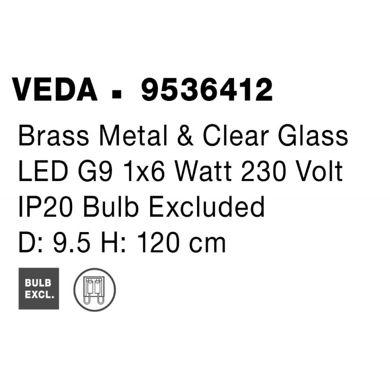 Brass Metal & Clear Glass LED G9 1x6 Watt 230 Volt IP20 Bulb Excluded D: 9.5 H: 120 cm Adjustable height