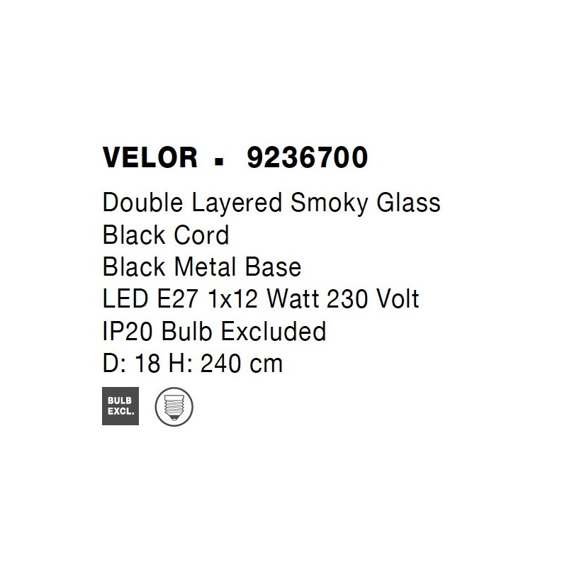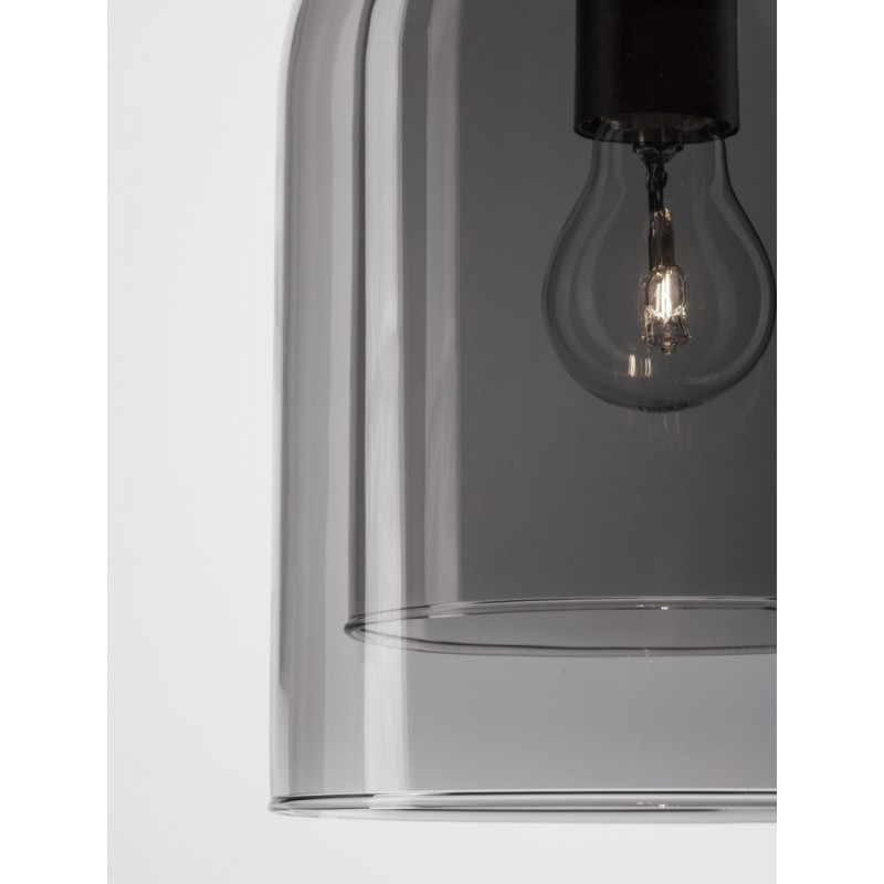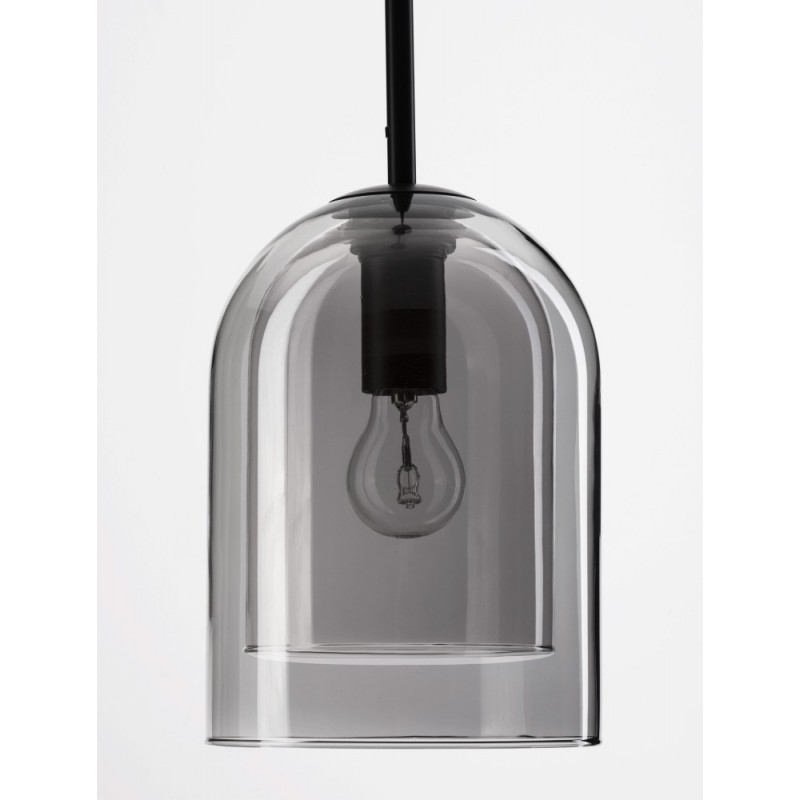 Double Layered Smoky Glass Black Cord Black Metal Base LED E27 1x12 Watt 230 Volt IP20 Bulb Excluded D: 18 H: 240 cm Adjustable