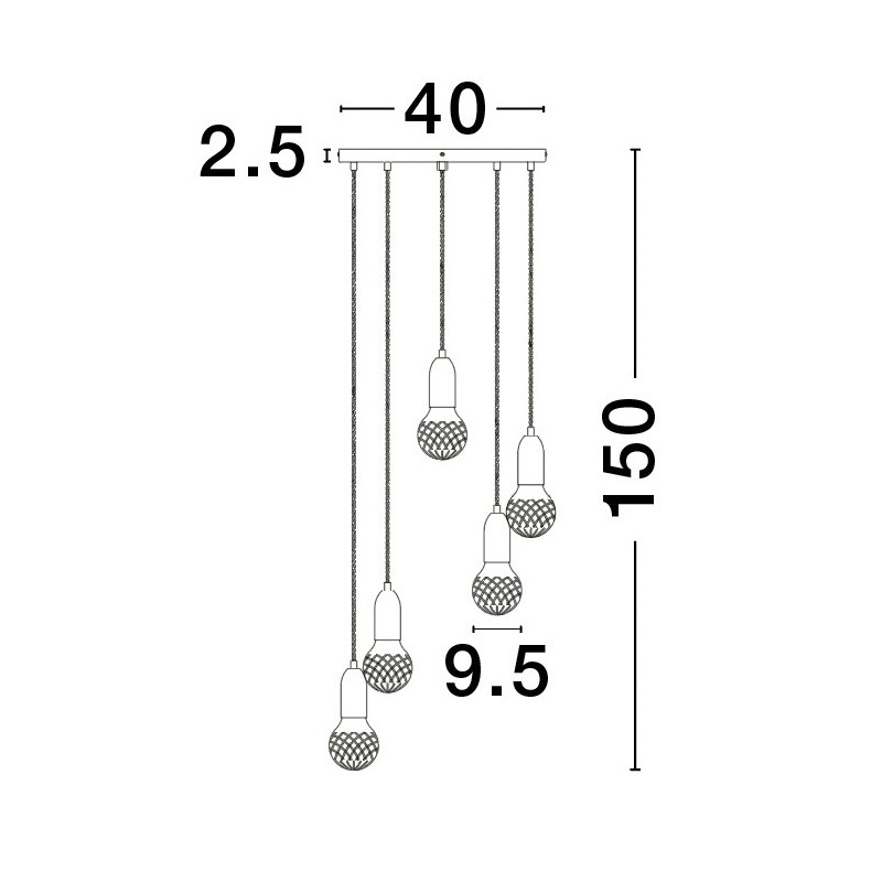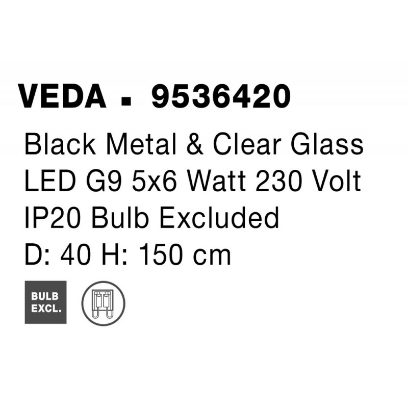 Black Metal & Clear Glass LED G9 5x6 Watt 230 Volt IP20 Bulb Excluded D: 40 H: 150 cm Adjustable height