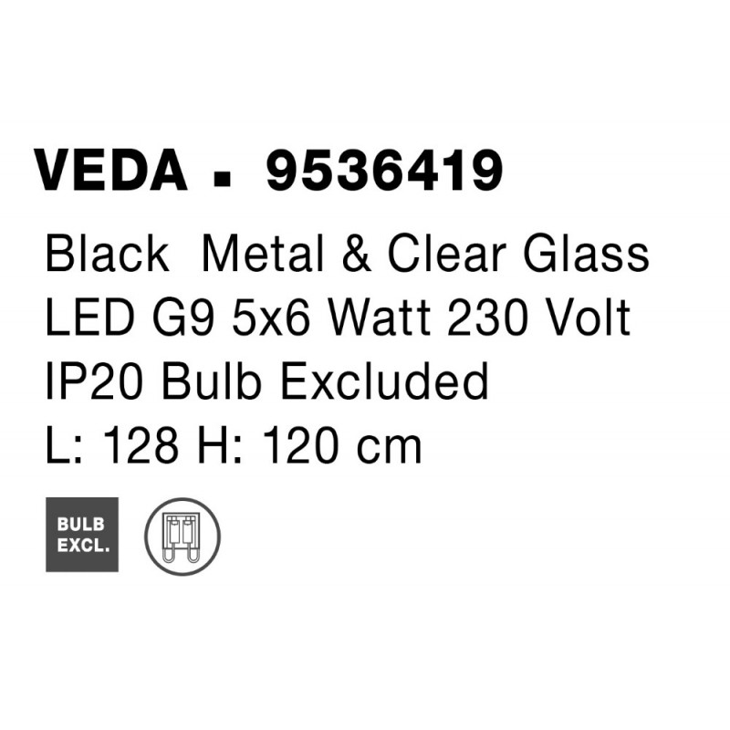 Black Metal & Clear Glass LED G9 5x6 Watt 230 Volt IP20 Bulb Excluded L: 128 W: 10 H: 120 cm Adjustable height
