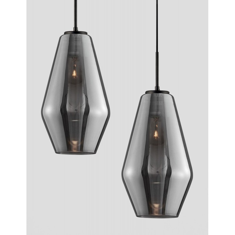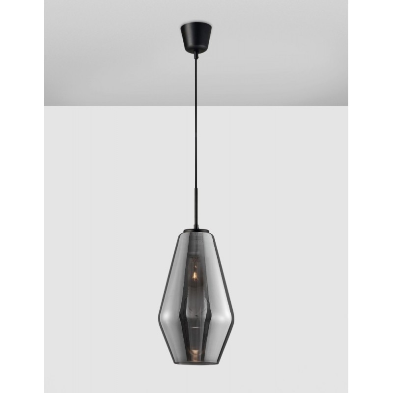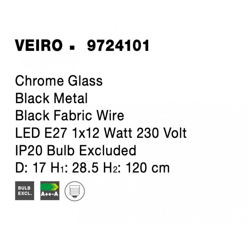Chrome Glass Black Metal Black Fabric Wire LED E27 1x12 Watt 230 Volt IP20 Bulb Excluded D: 17 H1: 28.5 H2: 120 cm Adjustable