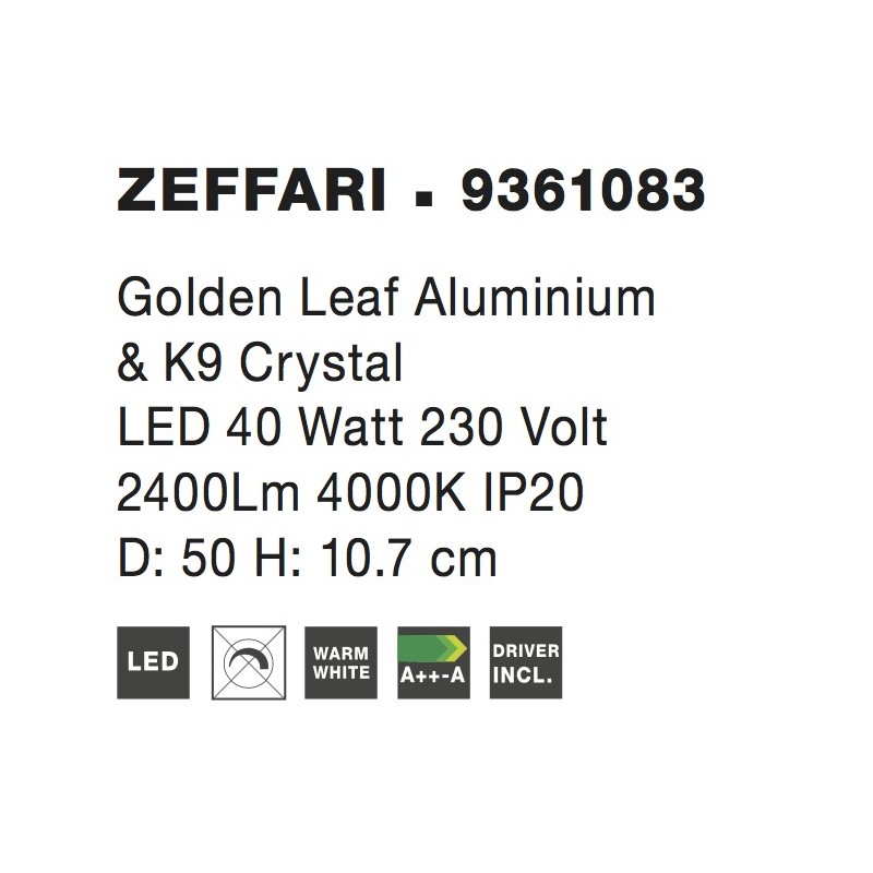 Golden Leaf Aluminium & K9 Crystal LED 40 Watt 230 Volt 2400Lm 4000K IP20 D: 50 H: 10.7 cm