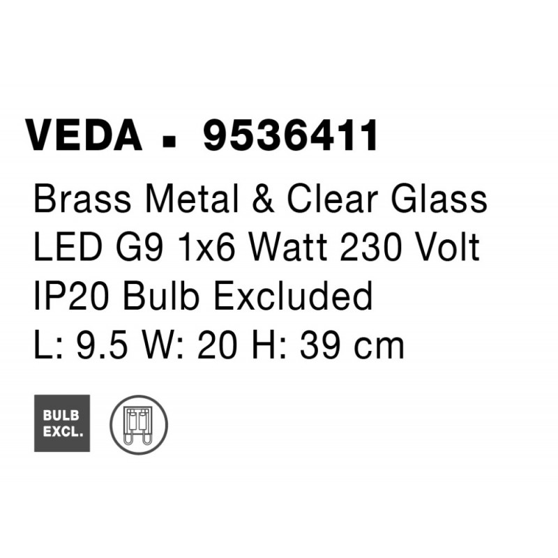 Brass Metal & Clear Glass LED G9 1x6 Watt 230 Volt IP20 Bulb Excluded L: 9.5 W: 20 H: 39 cm