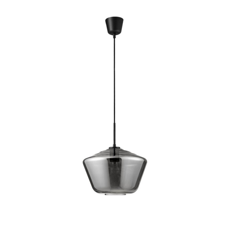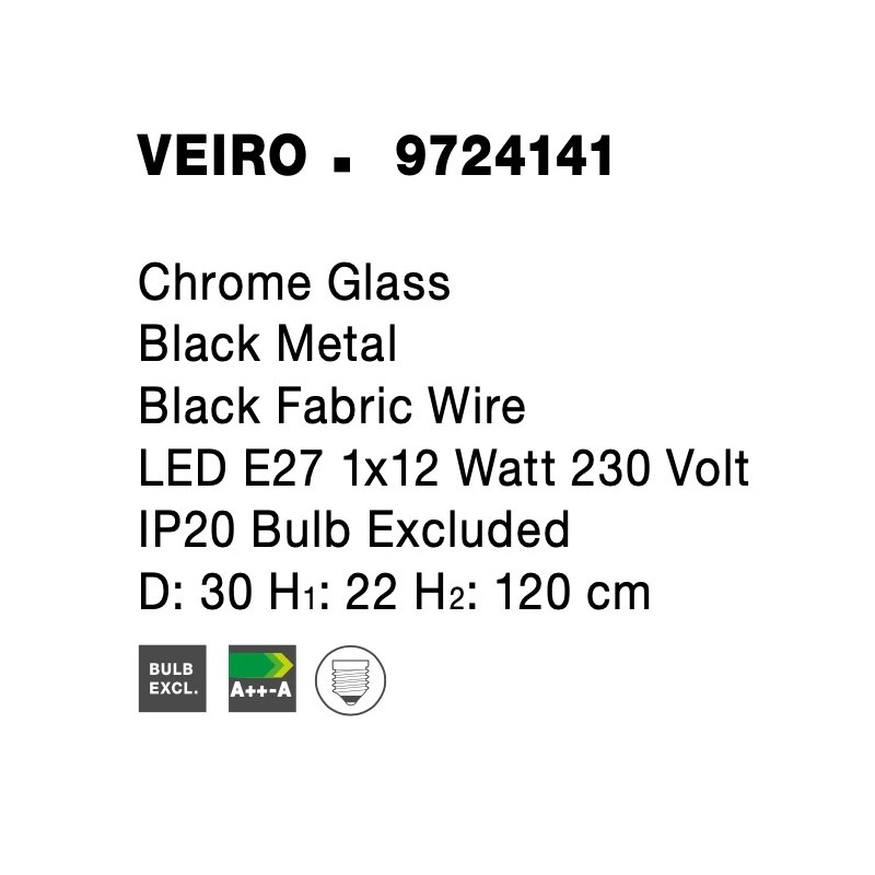 Chrome Glass Black Metal Black Fabric Wire LED E27 1x12 Watt 230 Volt IP20 Bulb Excluded D: 30 H1: 22 H2: 120 cm Adjustable he