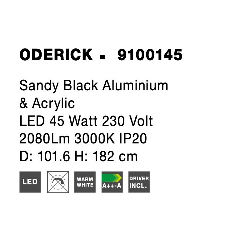 Sandy Black Aluminium & Acrylic LED 44 Watt 230 Volt 1346Lm 3000K IP20 D: 102 H: 182 cm Adjustable Height