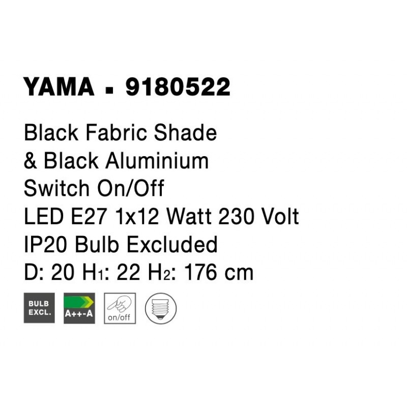 Black Fabric Shade & Black Aluminium Switch On/Off LED E27 1x12 Watt 230 Volt IP20 Bulb Excluded Cable Length: 192 cm D: 20 H1: