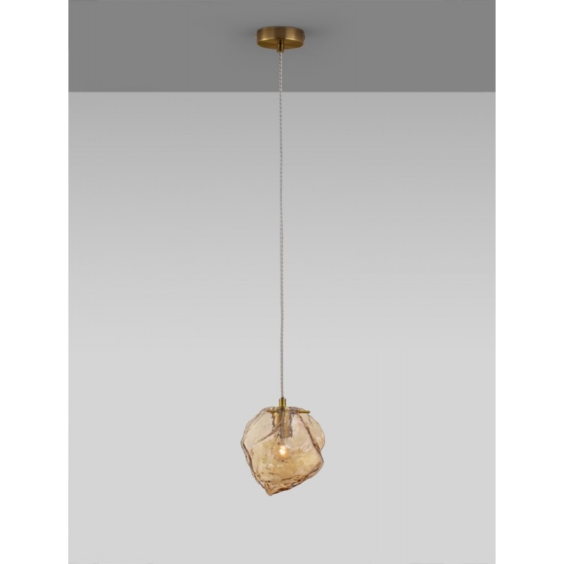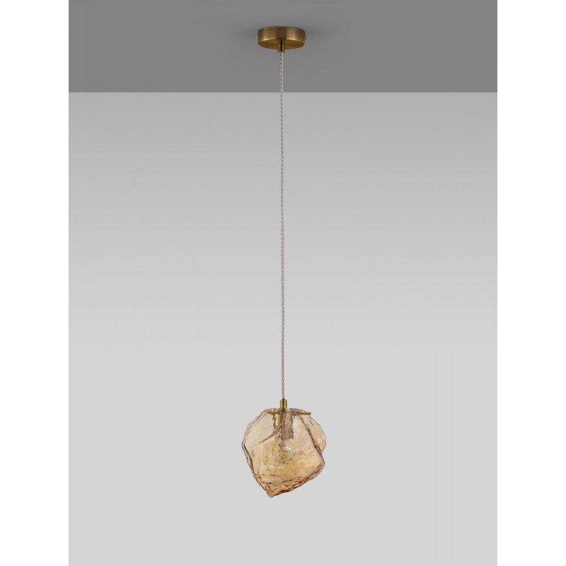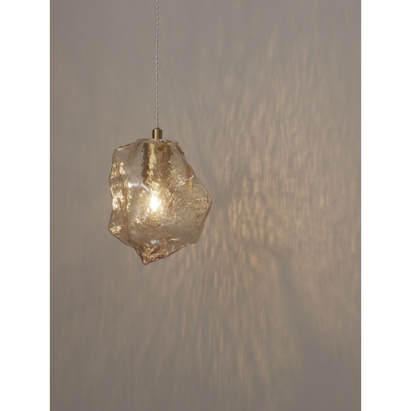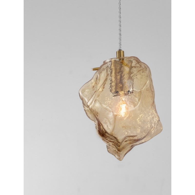 Brass Gold Metal & Amber Glass LED E14 1x5 Watt 230 Volt IP20 Bulb Excluded D: 18 H: 120 cm Adjustable height