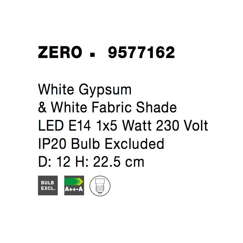 White Gypsum & White Fabric Shade LED E14 1x5 Watt 230 Volt IP20 Bulb Excluded D: 12 H: 22.5 cm