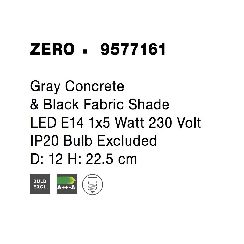 Gray Concrete & Black Fabric Shade LED E14 1x5 Watt 230 Volt IP20 Bulb Excluded D: 12 H: 22.5 cm