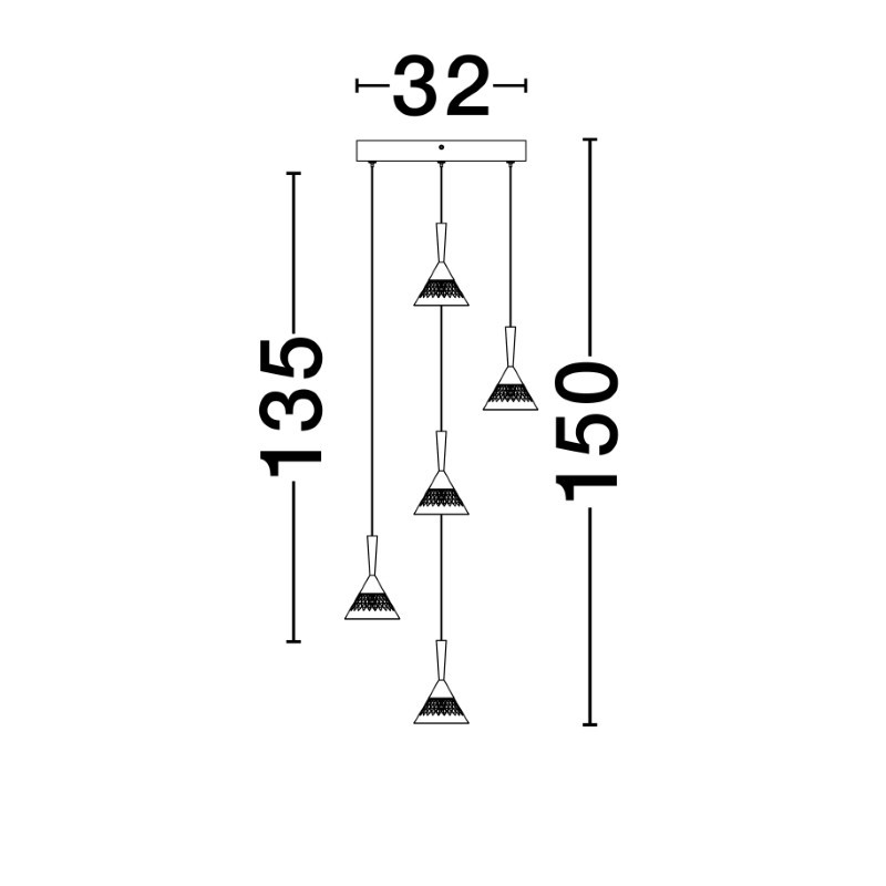 Triac Dimmable Matt Black & Rose Gold Metal Structured Acrylic LED 30 Watt 220-240Volt 1558Lm 3000K IP20 D: 32 H: 150 cm