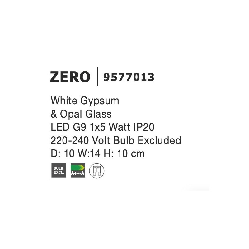 White Gypsum & Opal Glass LED G9 1x5 Watt IP20 220-240 Volt Bulb Excluded D: 10 W:14 H: 10 cm