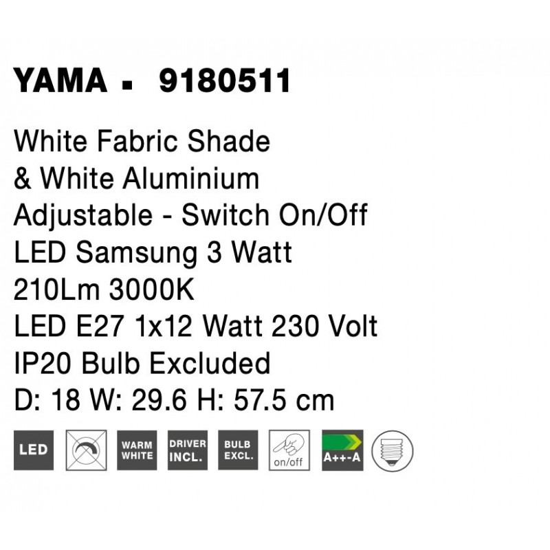 White Fabric Shade & White Aluminium Adjustable - Switch On/Off LED Samsung 3 Watt 210Lm 3000K LED E27 1x12 Watt 230 Volt IP20 B