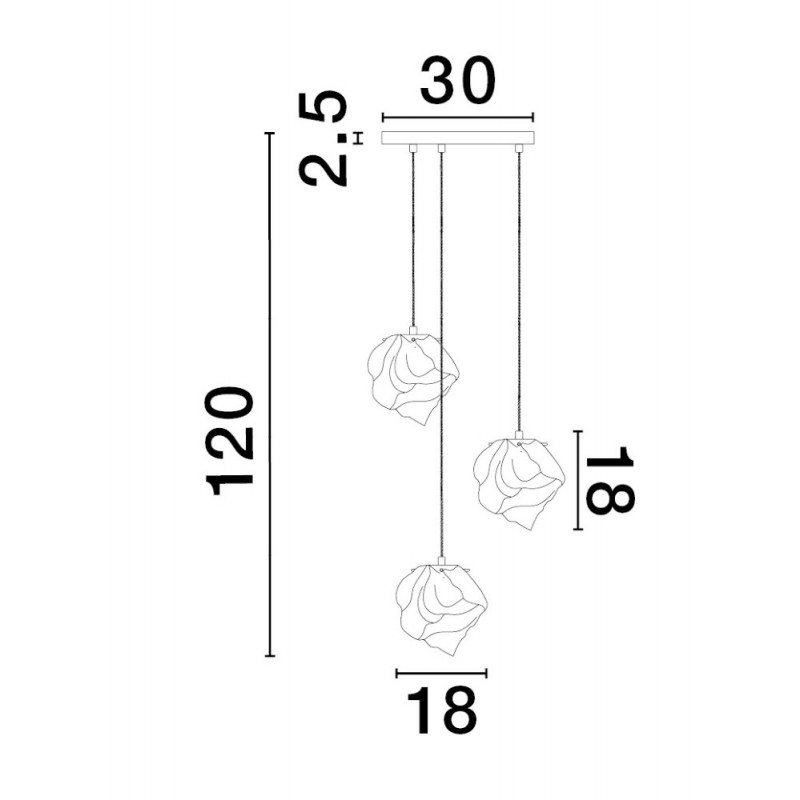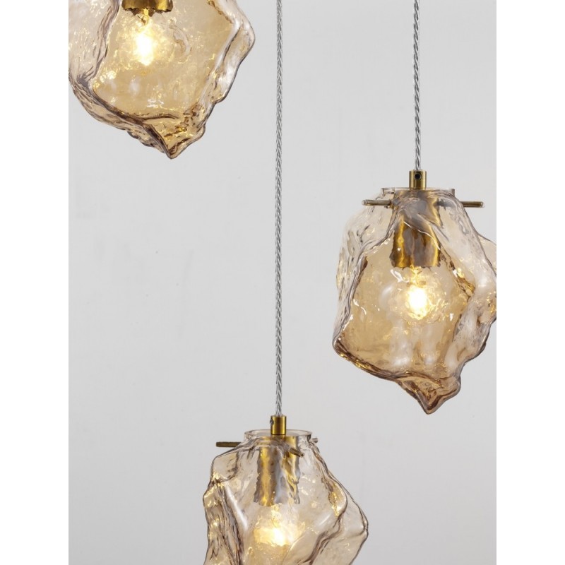 Brass Gold Metal & Amber Glass LED E14 3x5 Watt 230 Volt IP20 Bulb Excluded D: 40 H: 120 cm Adjustable height