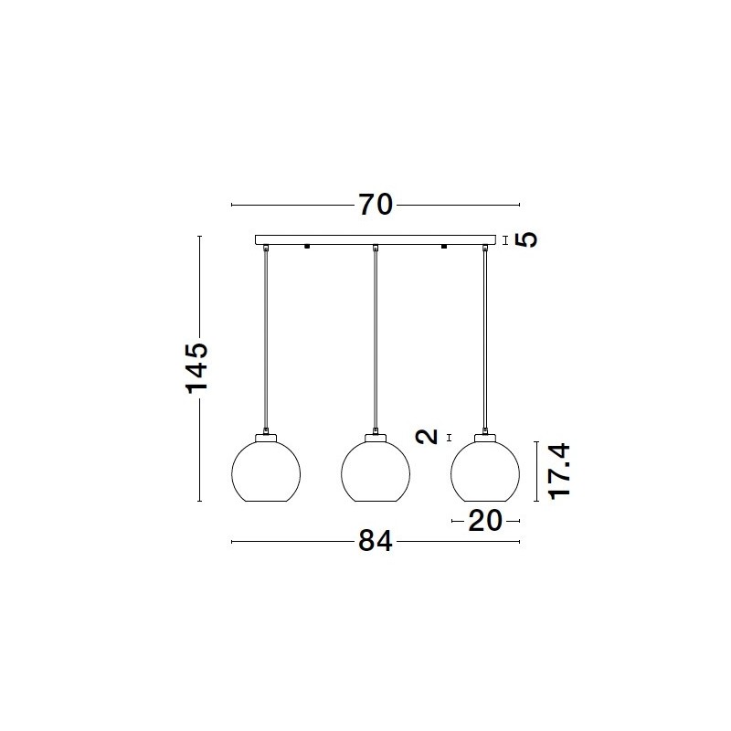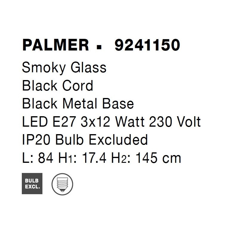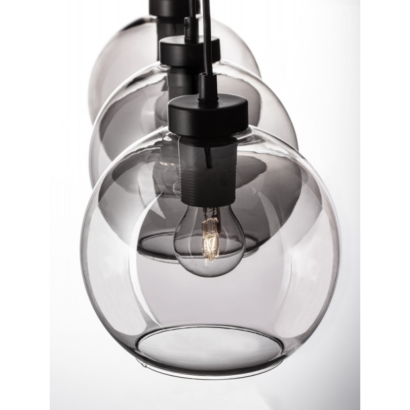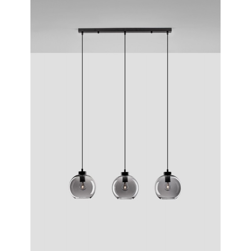 Smoky Glass Black Cord Black Metal Base LED E27 3x12 Watt 230 Volt IP20 Bulb Excluded L: 84 H 1: 17.4 H 2: 145 cm Adjustable h