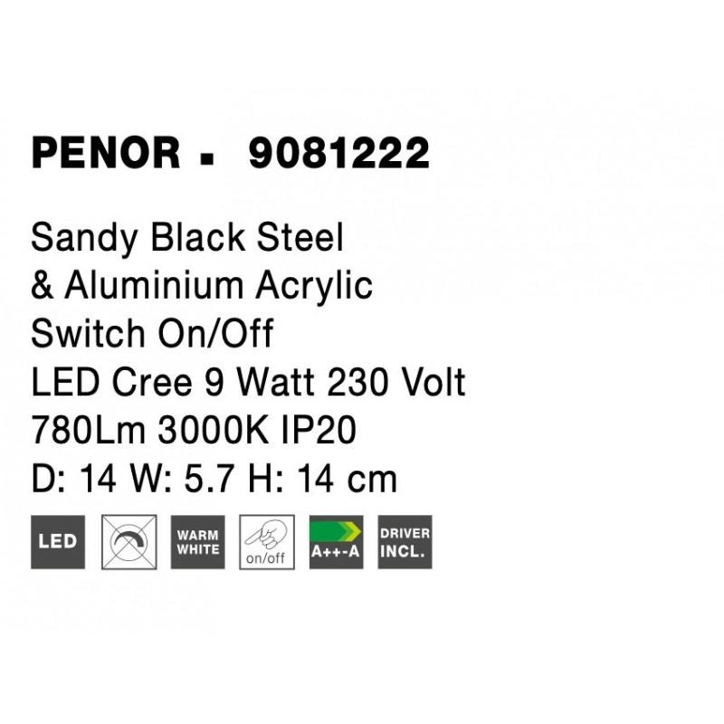 Sandy Black Steel & Aluminium Acrylic Switch On/Off LED Cree 9 Watt 230 Volt 780Lm 3000K IP20 D: 14 W: 5.7 H: 14 cm Rotating &
