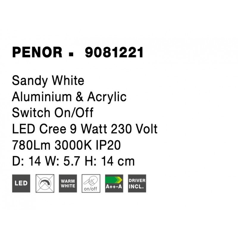 Sandy White Aluminium & Acrylic Switch On/Off LED Cree 9 Watt 230 Volt 780Lm 3000K IP20 D: 14 W: 5.7 H: 14 cm Rotating & Adjust