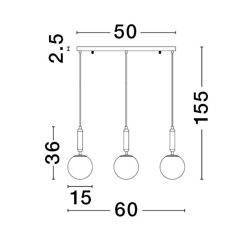 Brass Gold Metal Opal Glass LED E27 3x12 Watt 230 Volt IP20 Bulb Excluded L: 60 W: 15 H: 155 cm Adjustable height