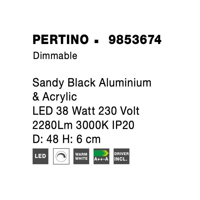 3000K Triac Dimmable Sandy Black Aluminium & Acrylic LED 40 Watt 230 Volt 2554Lm IP20 D: 48 H: 6 cm