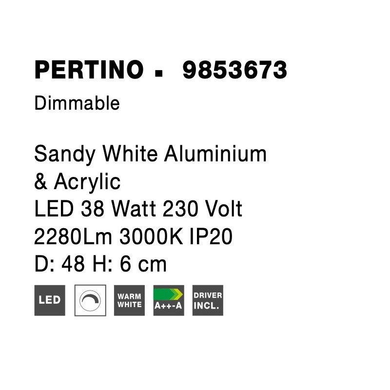 3000K Triac Dimmable Sandy White Aluminium & Acrylic LED 40 Watt 230 Volt 2554Lm IP20 D: 48 H: 6 cm