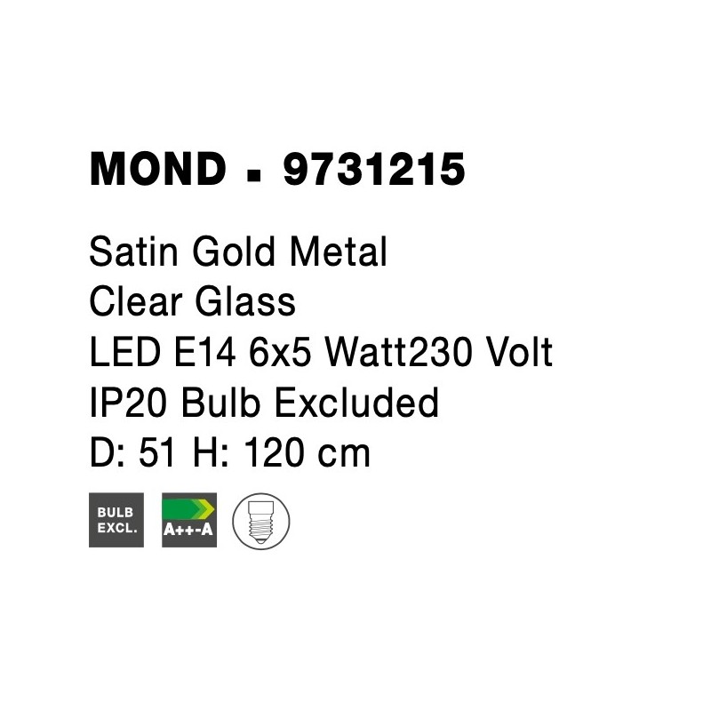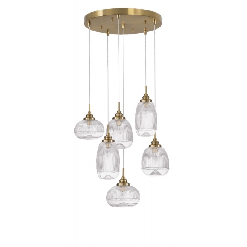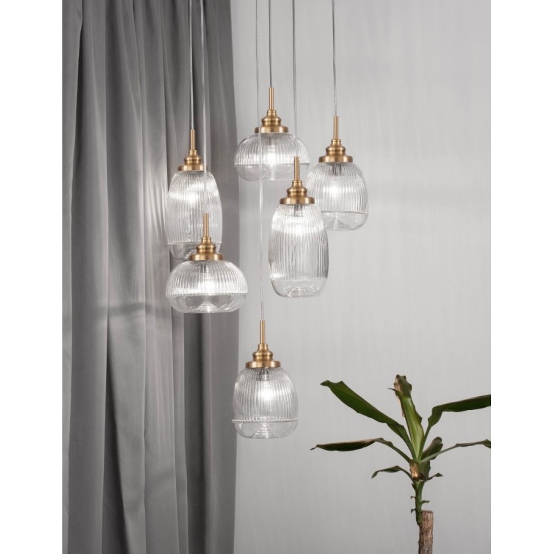 Satin Gold Metal Clear Glass LED E14 6x5 Watt 230 Volt IP20 Bulb Excluded D: 51 H: 120 cm Adjustable Height