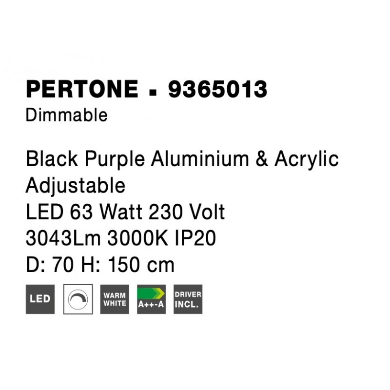 Triac Dimmable Black Purple Aluminium & Acrylic LED 63 Watt 230 Volt 3043Lm 3000K IP20 D: 70 H: 150 cm Adjustable Height & Adju