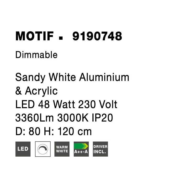 3000K Triac Dimmable Sandy White Aluminium & Acrylic LED 50 Watt 3684Lm 230 Volt IP20 D: 80 H: 200 cm