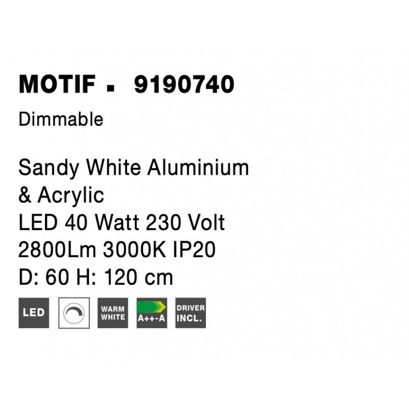 3000K Triac Dimmable Sandy White Aluminium & Acrylic LED 40 Watt 2943Lm 230 Volt IP20 D: 60 H: 200 cm Adjustable Height