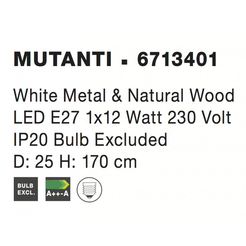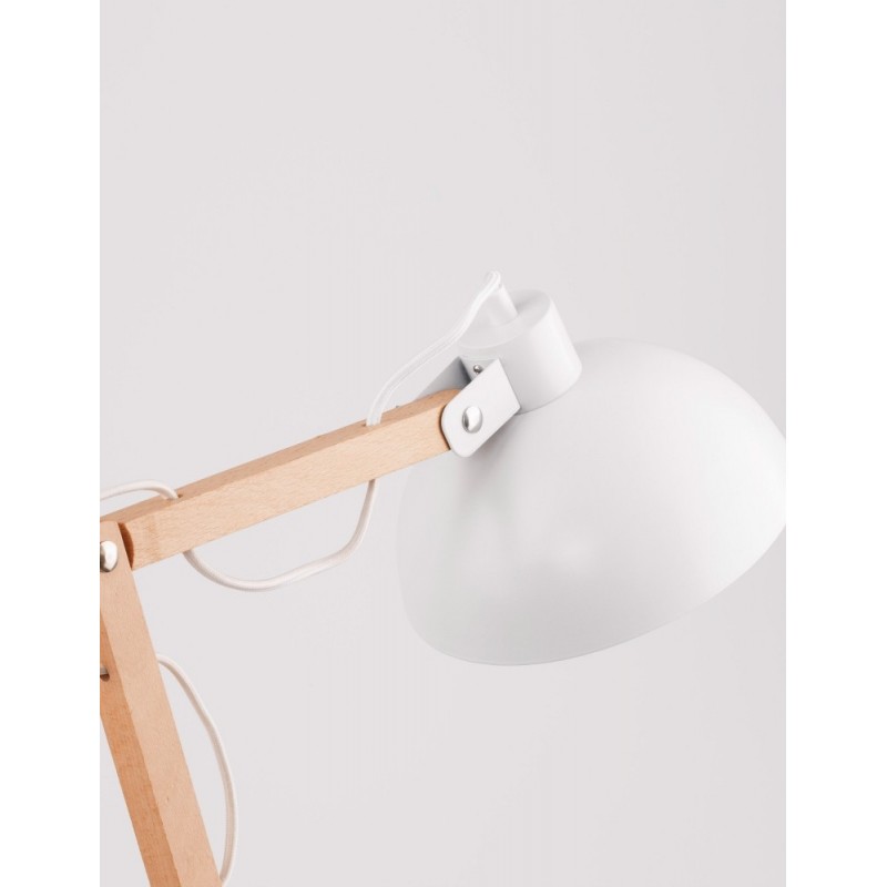 White Metal & Natural Wood LED E27 1x12 Watt 230 Volt IP20 Bulb Excluded Cable Length: 180 cm D: 25 H: 170 cm