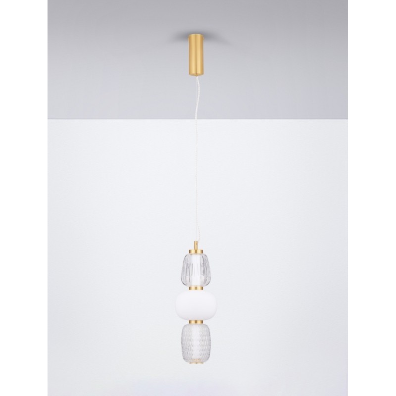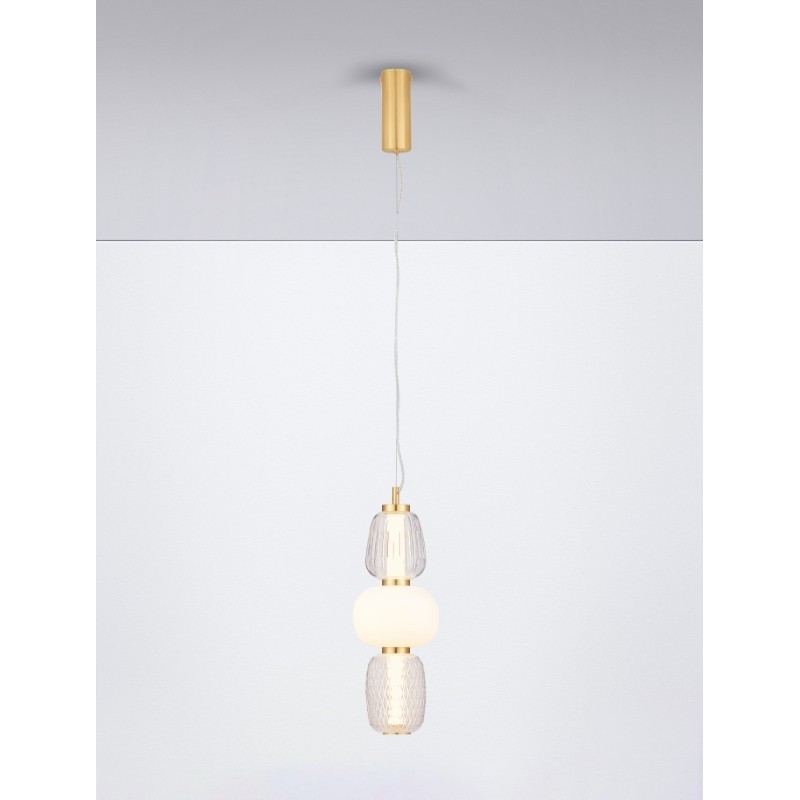Triac Dimmable Clear & Opal Glass Platinum Gold Metal Base LED 28 Watt 220-240 Volt 3748Lm 3000K IP20 D:17 H: 120 cm