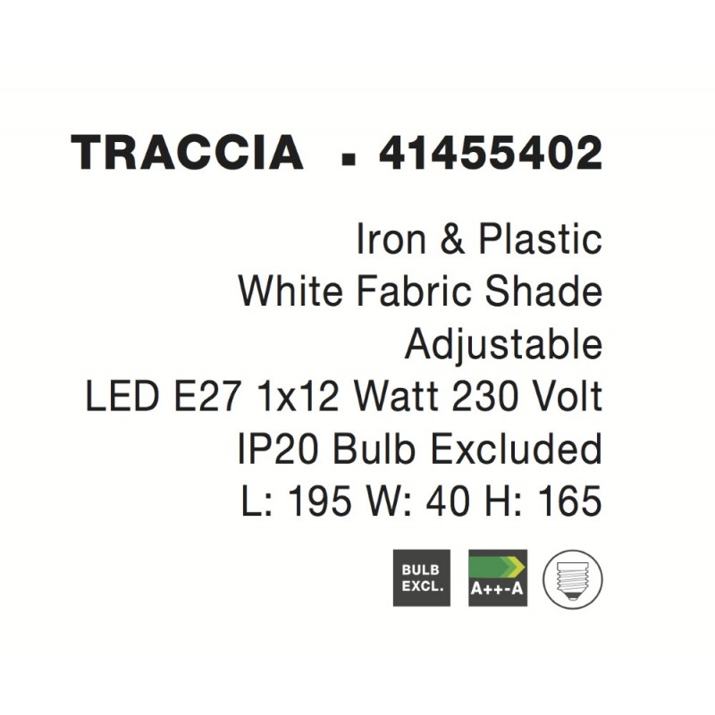 Iron & Plastic White Fabric Shade LED E27 1x12 Watt 230 Volt IP20 Bulb Excluded Cable Length: 240 cm L: 195 W: 40 H: 165 Adjust