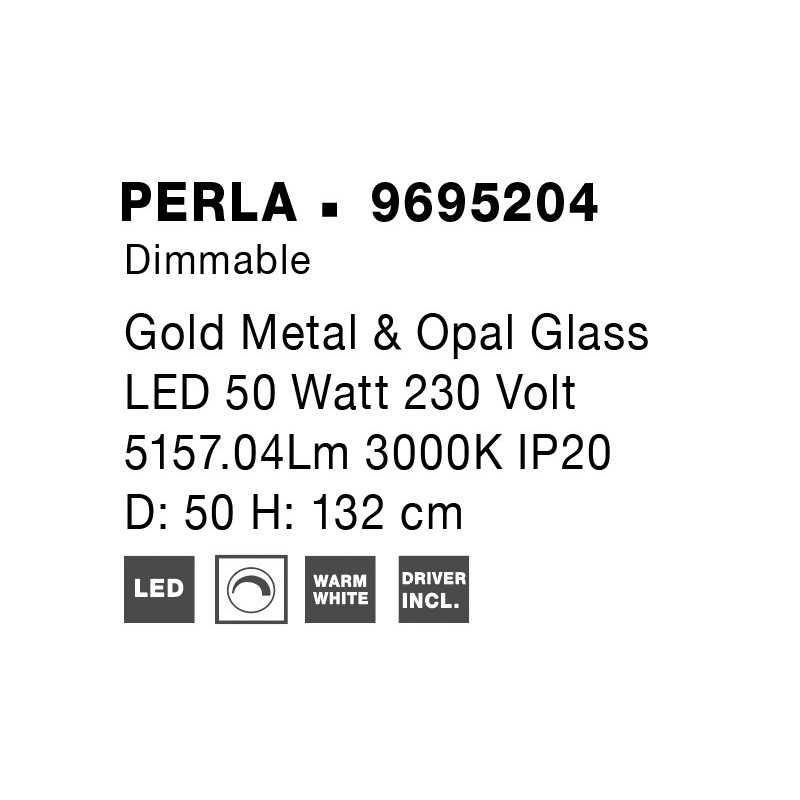 Triac Dimmable Gold Metal & Opal Glass LED 56 Watt 230 Volt 4734Lm 3000K IP20 L: 50 W: 5.3 H: 132 cm