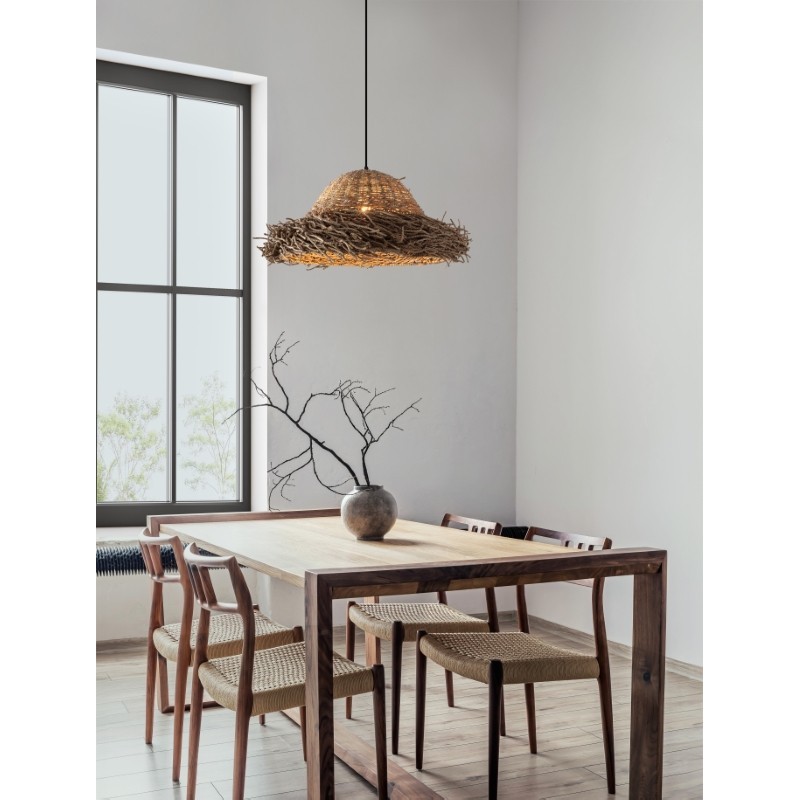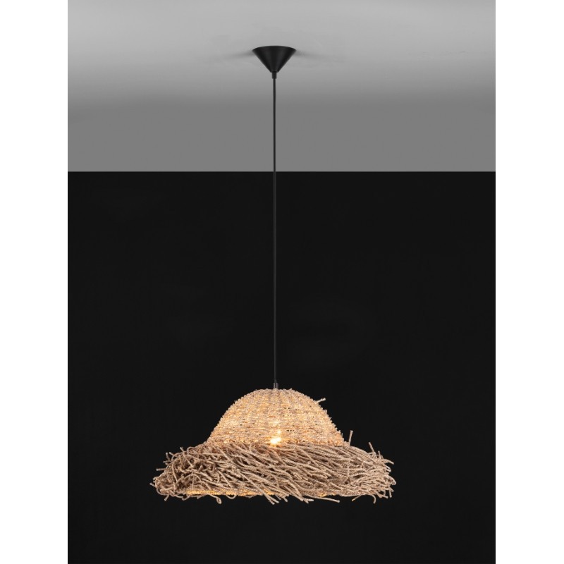 Natural Seagrass Black Fabric Wire & Base LED E27 3x12 Watt 100-240 Volt Bulb Excluded IP20 D:65 H1:28 H2:200cm
