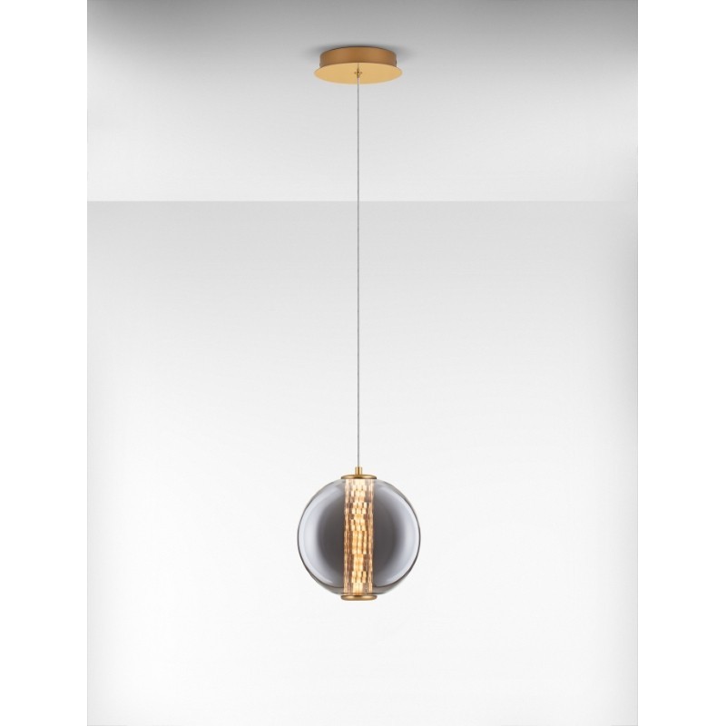 Brass Gold Metal & smoky gray glass LED 8 Watt 220-240 Volt 934Lm 3000K IP20 D:22 H:200 cm