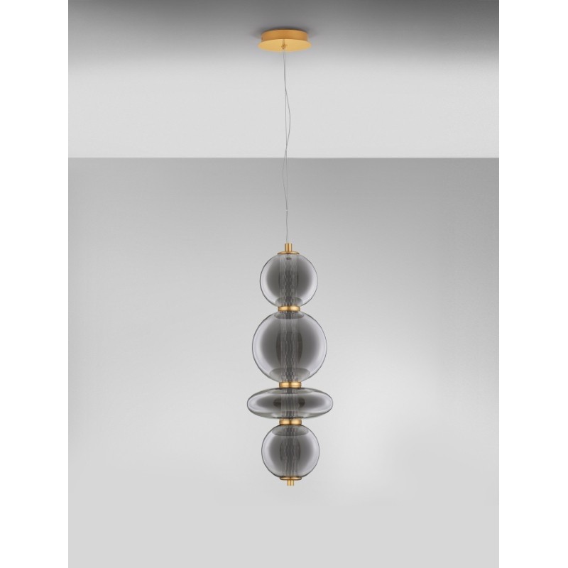Brass Gold Metal & smoky gray glass LED 20 Watt 220-240 Volt 2601Lm 3000K IP20 D:25,5 H:200 cm